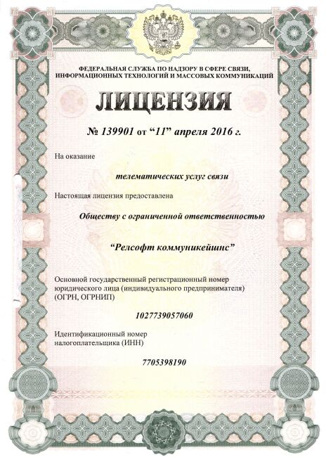 ООО «Релсофт коммуникейшнс» осуществляет свою деятельность на основании лицензий Министерства связи и массовых коммуникаций РФ: